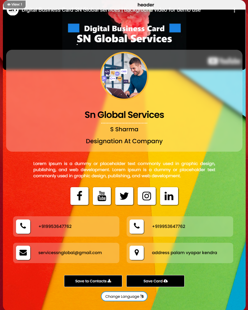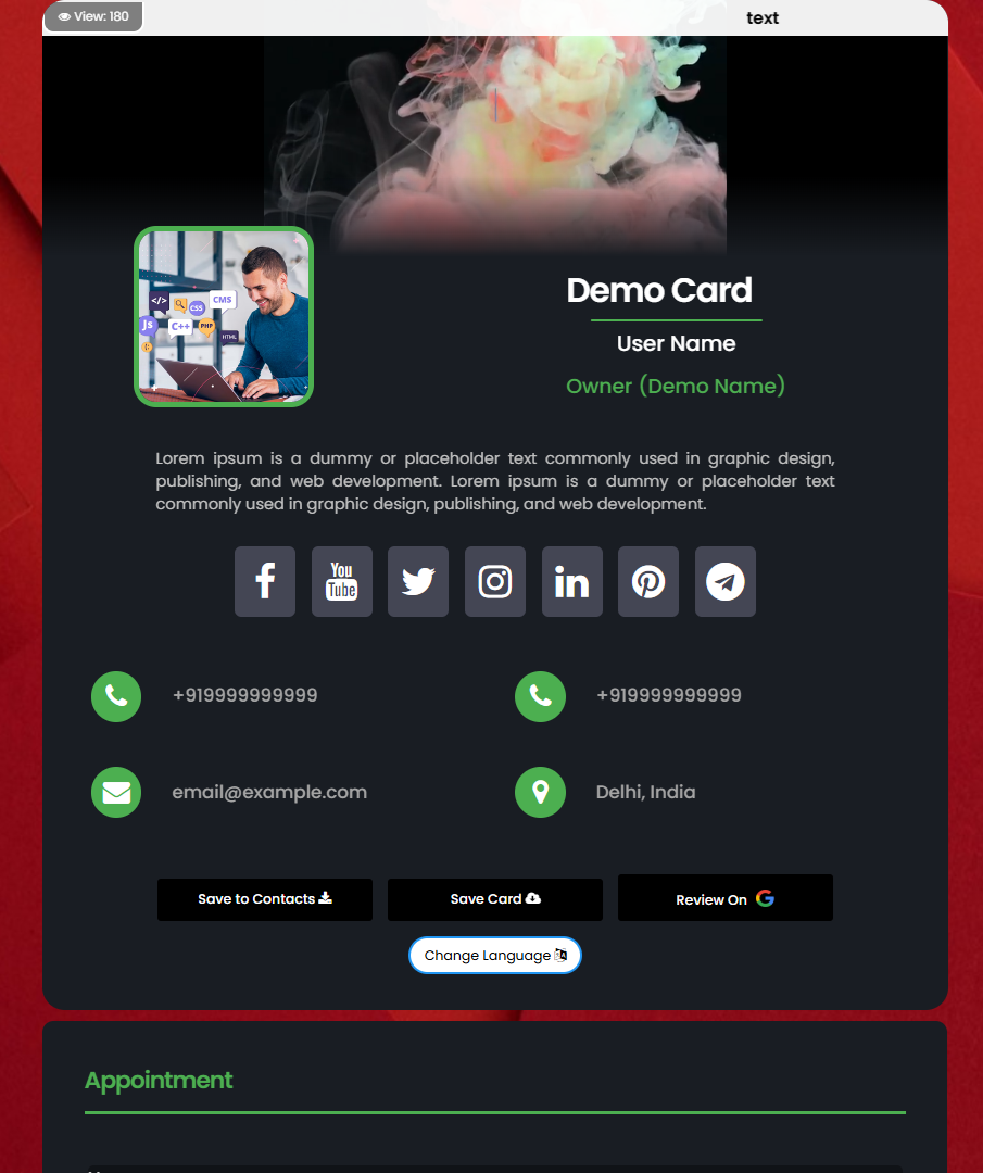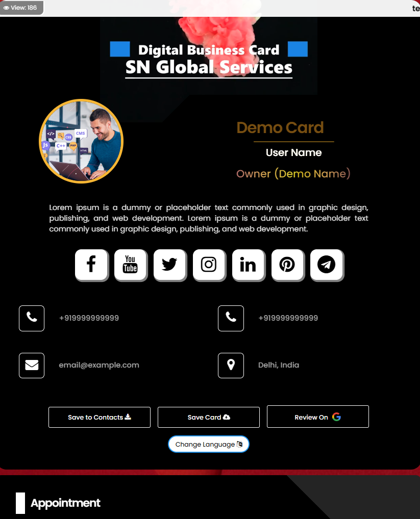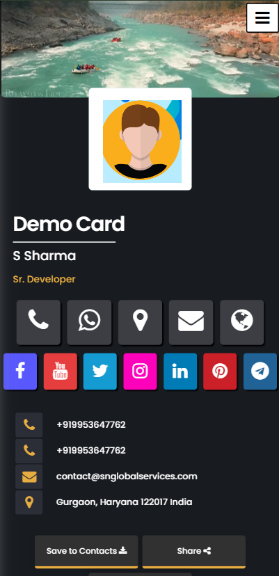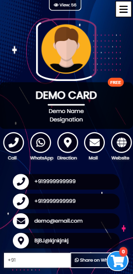Once card created and activated its ready to share.