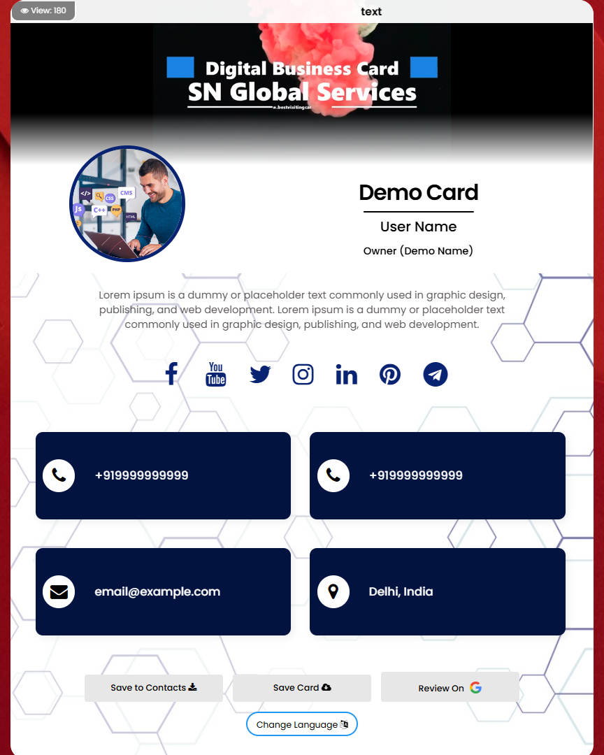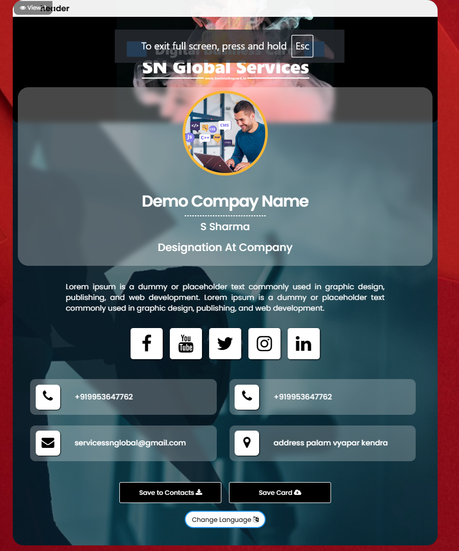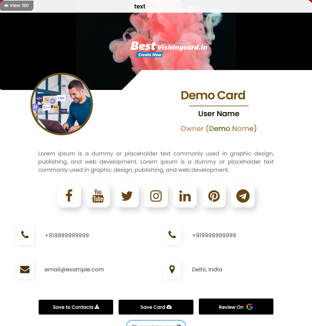 Once card created and activated its ready to share.